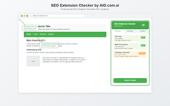 SEO Extension Checker, web sitenizin arama motoru performansını artırmak için tasarlanmış kapsamlı bir araçtır. 250'den fazla profesyonel analiz aracı sunarak, başlık etiketleri, meta açıklamalar ve içerik optimizasyonu gibi kritik SEO unsurlarını analiz eder. Gerçek zamanlı geri bildirim sağlayarak, kullanıcıların optimizasyon durumunu anlamalarına yardımcı olur ve iyileştirme önerileri sunar.